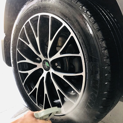 Процедура по чернению резины проста. Перед тем, как к ней приступить, шины тщательно промываются, обдуваются сжатым воздухом и просушиваются. Мы это делаем с применением специального оборудования. Затем чистая и сухая поверхность равномерно покрывается специальным составом.